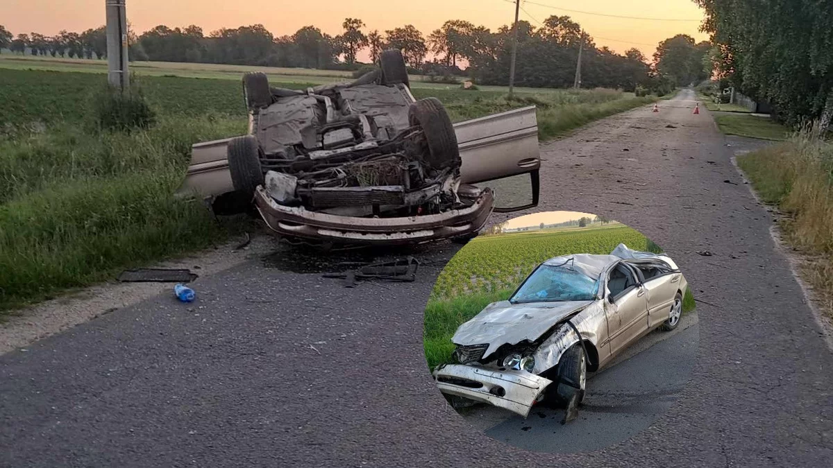Zgłoszenie do służb wpłynęło dzisiaj (15 czerwca 2025 roku) po godz. 3.30. 23-letni mieszkaniec gminy Kobylin jechał mercedesem c-200. Ze wstępnych ustaleń policji wynika, że nie dostosował prędkości do panujących warunków, wypadł z jezdni i dachował. Droga została zablokowana.