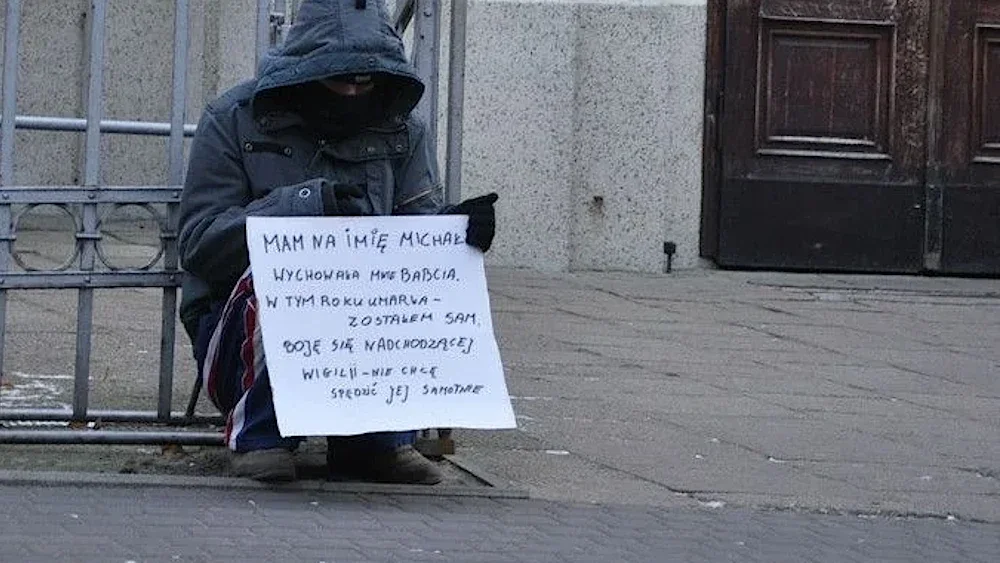Chyba z zaciekawieniem, tak mi się wydaje, czytają napisaną na kartonie informację: „Mam na imię Michał. Wychowała mnie babcia. W tym roku umarła – zostałem sam. Boję się nadchodzącej Wigilii – nie chcę spędzić jej samotnie”. Ukradkiem patrzę na przechodzących. W głowie tysiące myśli – czy ktoś zareaguje na mój apel?