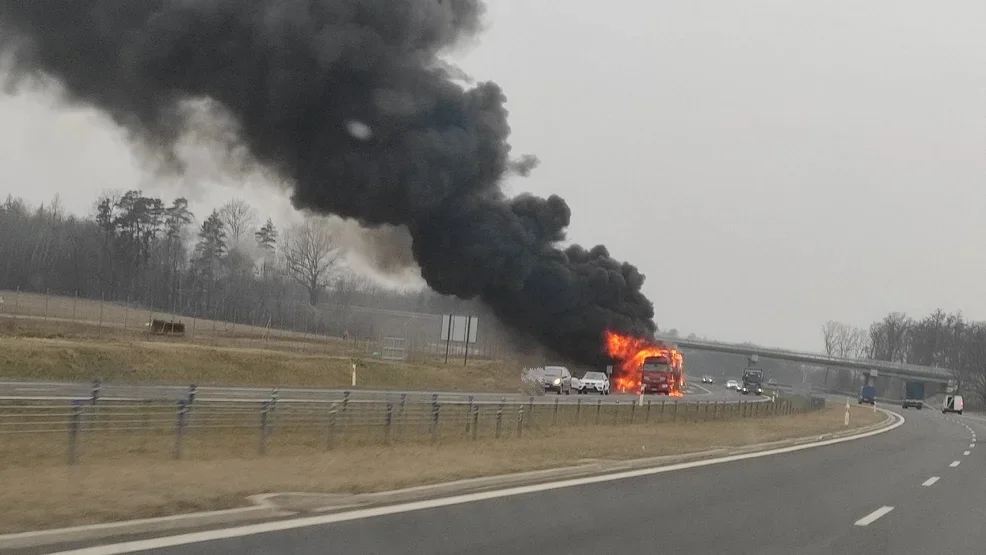 Pierwsze powiadomienia o pożarze nadesłali nam internauci. Około 16.30 doszło do zapalenia się samochodu ciężarowego wiozącego 18 ton jednorazowych rękawiczek z lateksu.