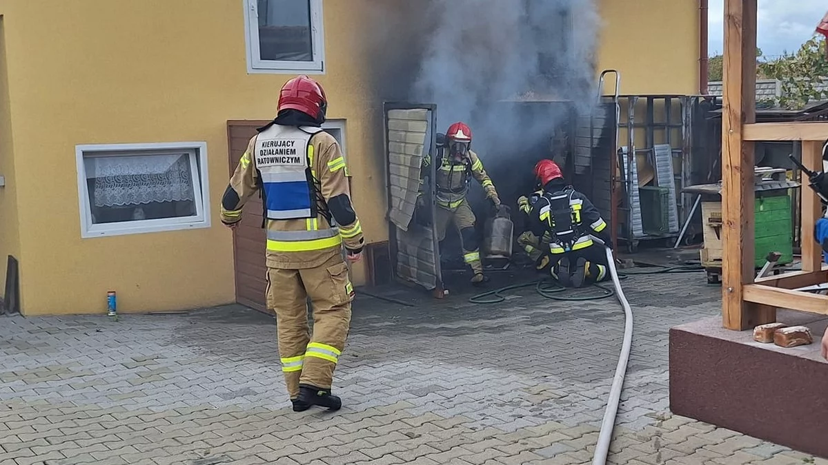 Z garażu zostały wyniesione dwie jedenastokilogramowe butle na gaz propan butan, w tym jedna pełna. Trwa ich schładzanie.