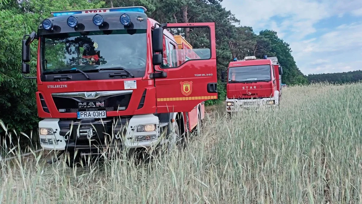 Z kolei, dziś (17.06.2023) o godz. 10.18 strażacy otrzymali zgłoszenie o palącym się zbożu na pniu w Zaborowie (gm. Jutrosin). Wcześniej, kierujący ciągnikiem z przyczepą prawdopodobnie zahaczył o linię energetyczną. Iskry spadły na trawę.
