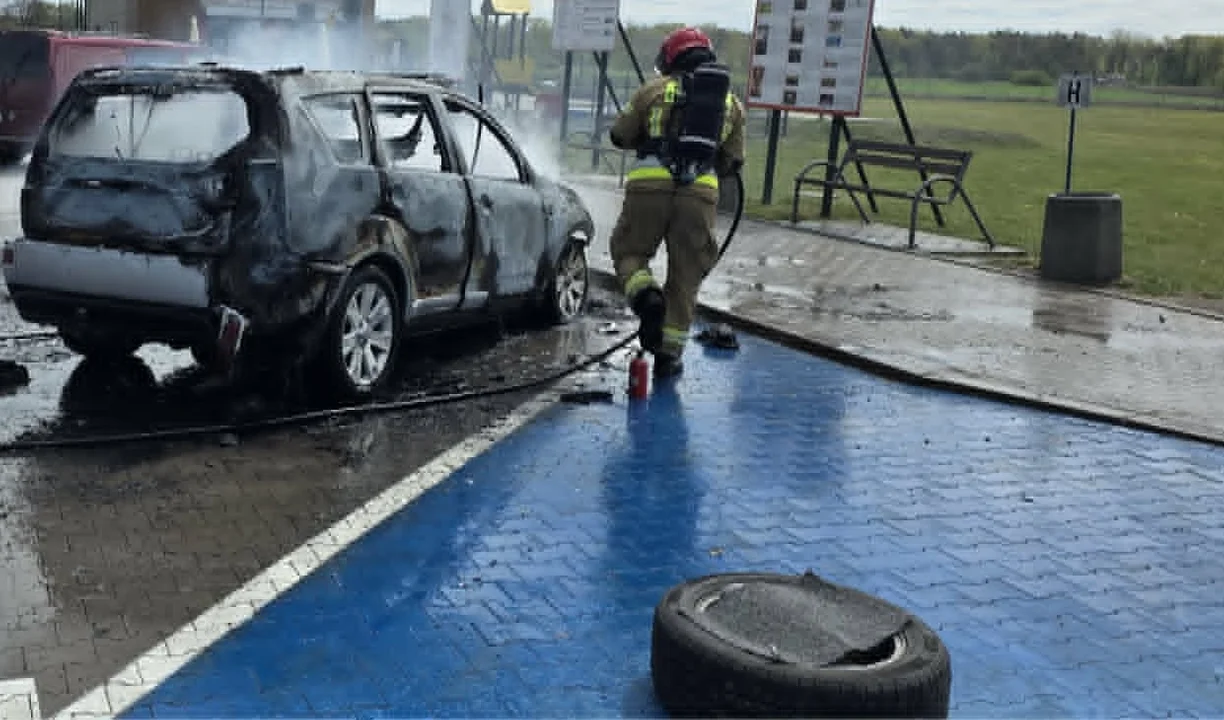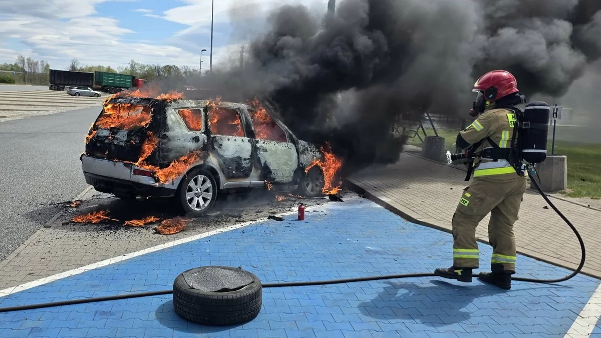 Strażacy otrzymali zgłoszenie w czwartek (30 kwietnia) około godz. 12.30 o pożarze na drodze ekspresowej S5. W trakcie dojazdu na miejsce zdarzenia doprecyzowana została informacja, że auto stoi już na terenie MOP-u Folwark. W działaniach brali udział strażacy zawodowi z rawickiej jednostki.
