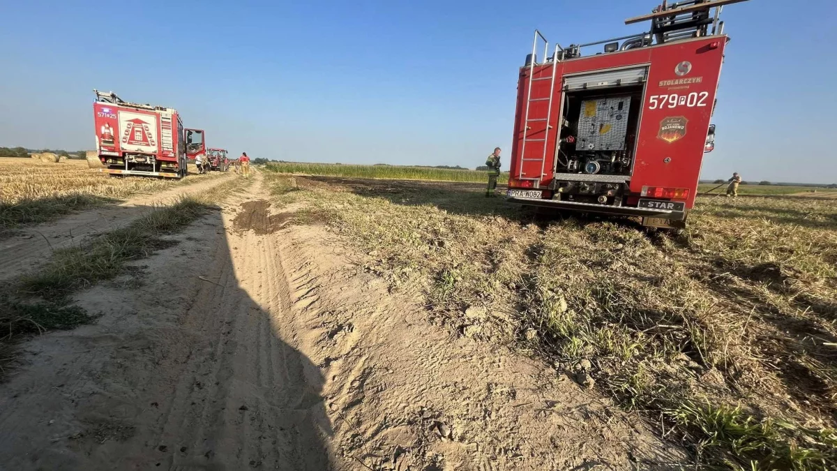 - Przypuszczalną przyczyną pożaru było uderzenie kamienia w rotor prasy rolniczej. Spowodowało to zapłon słomy w komorze maszyny. Ogień szybko rozprzestrzenił się na pobliskie rżysko - wyjaśnia Rafał Spychalski.