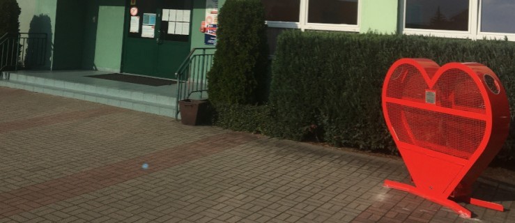 Kolejne czerwone serce na nakrętki stanęło na terenie naszego powiatu. Tym razem przed wejściem do miejskogóreckiego Zespołu Szkół im. Stanisława Mikołajczyka w Miejskiej Górce.