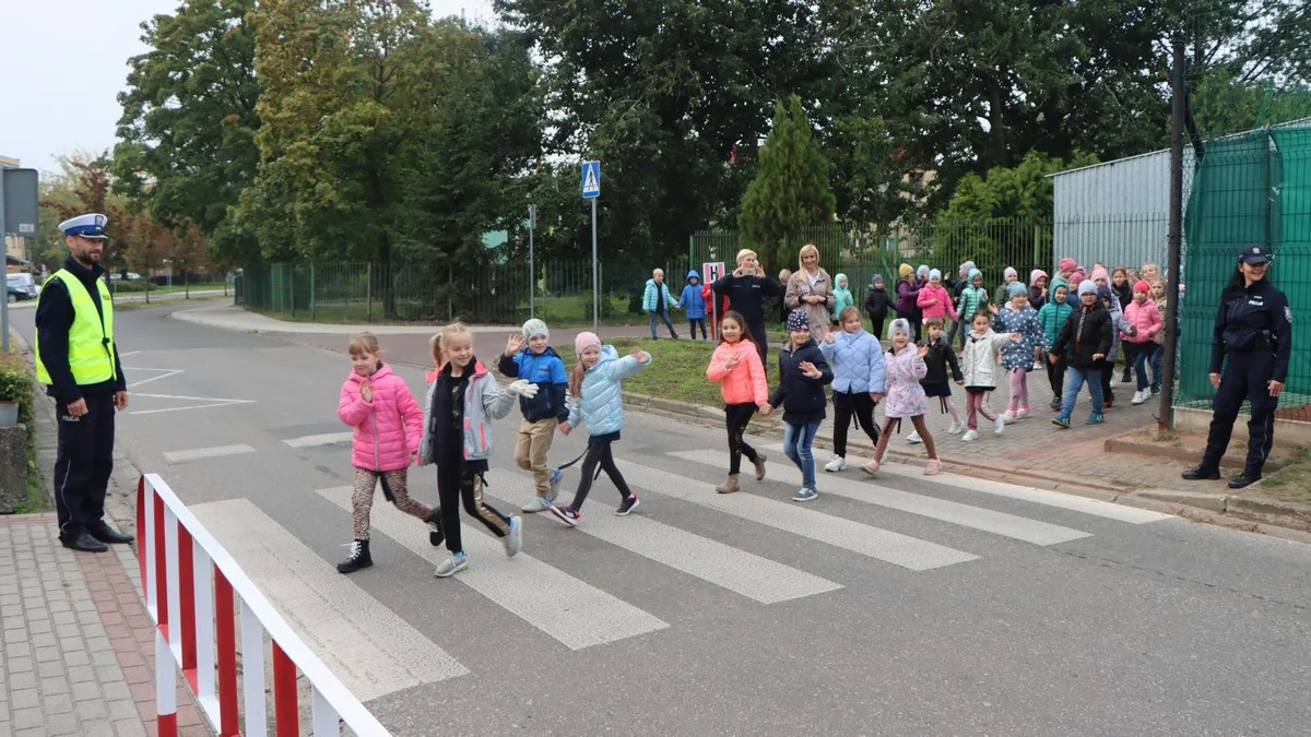 Dziś (26 września 2022r.) oficer prasowa rawickiej jednostki, asp. sztab. Beata Jarczewska, kierownik Rewiru Dzielnicowych w Rawiczu oraz szefostwo "drogówki" spotkało się z uczniami czterech klas pierwszych Szkoły Podstawowej nr 4 w Rawiczu. Przedstawili najmłodszym pomysł, by na przejściu dla pieszych machać do kierowcy. W ten sposób dziecko nawiąże kontakt wzrokowy z prowadzącym auto. Funkcjonariusze przypomnieli także, że na pasach nie wolno korzystać z telefonu komórkowego. Uczestnicy akcji wspólnie, kilkukrotnie pokonali przejście dla pieszych, machając do kierowców. Ci ostatni nie omieszkali odwzajemnić tego gestu.