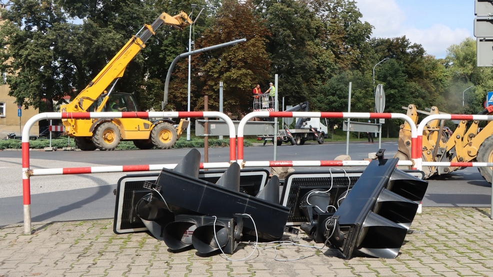 Przed południem pracownicy wykonawcy demontowali sygnalizatory świetlne. Kierowali oni także ruchem oraz ustawili zapory na ul. Kamińskiego i 17 Stycznia. Od Szymanowa wytyczono objazd ul. 1000-lecia. Z kolei wyjeżdżający z centrum mogą korzystać z objazdów: Wałami Dąbrowskiego (wewnętrzną stroną plant), koło Pomnika Żołnierza lub koło Domu Kultury .