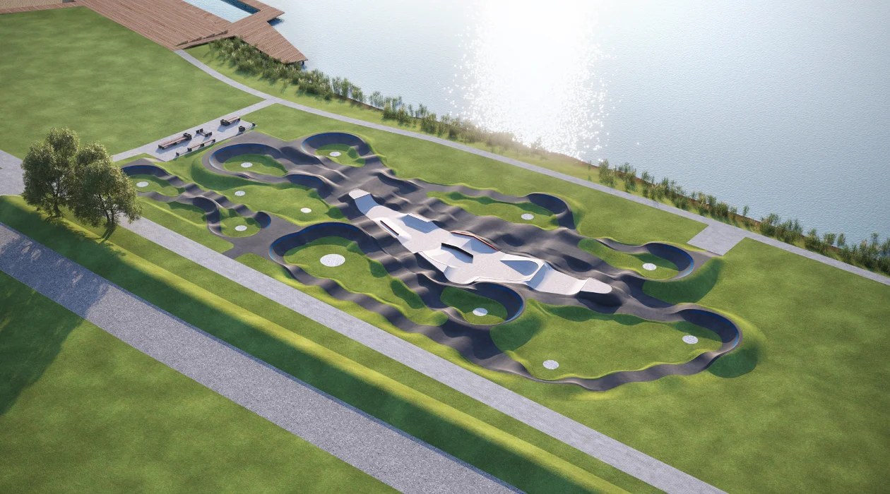 Cały zespół będzie się składać z 3 torów asfaltowych: mini pumptracka, pumptracka i pumptracka „PRO” oraz z wewnętrznej betonowej skateplazy.