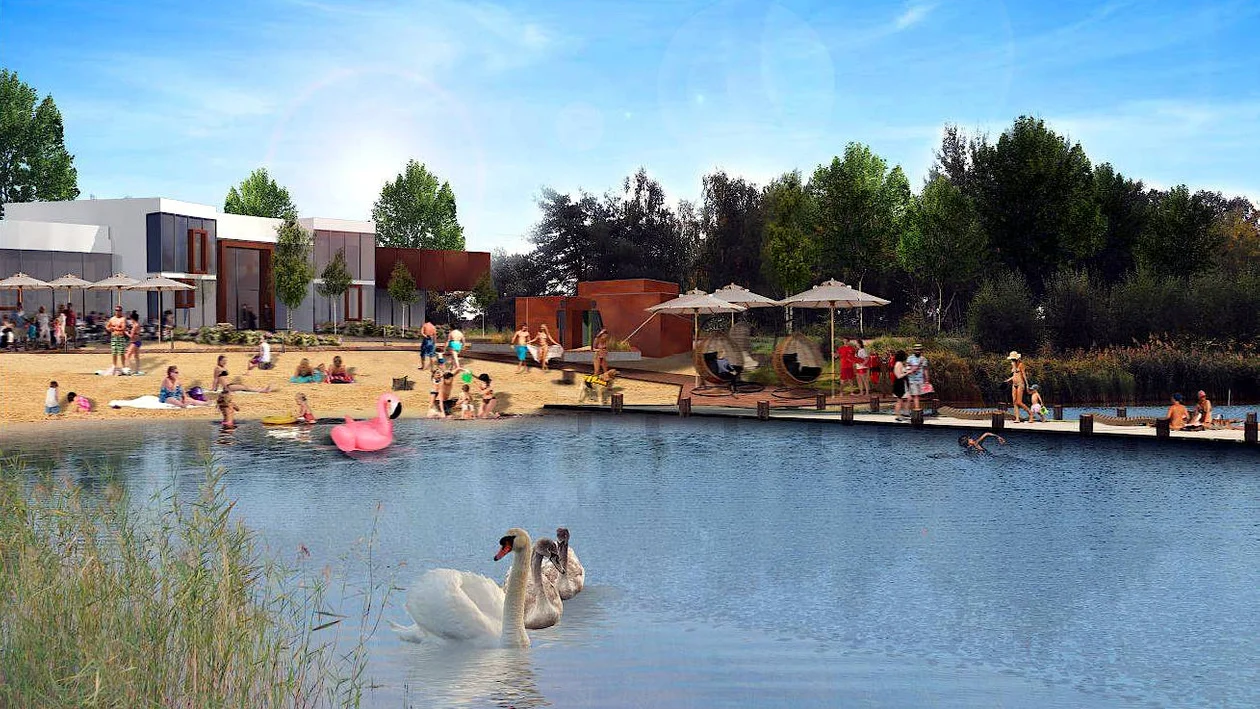 Projekt ma polegać na budowie kąpieliska, 1,7 km ścieżek pieszo-rowerowych z oświetleniem i ścianki wspinaczkowej. Powstanie też promenada o długości 1 km. W ramach inwestycji zamontowane zostaną również panele fotowoltaiczne zasilające obiekty ulokowane na terenie poligonu. Mają też zostać przebudowane ulice – 800 m Świętojańskiej i 600 m Czeladniczej - informował burmistrz Grzegorz Kubik na swoim profilu społecznościowym jesienią ubiegłego roku.