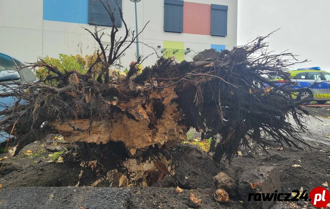 Do najpoważniejszego zdarzenia doszło w Rawiczu. Drzewo powalone przez silny podmuch spowodowało poważne zniszczenia.