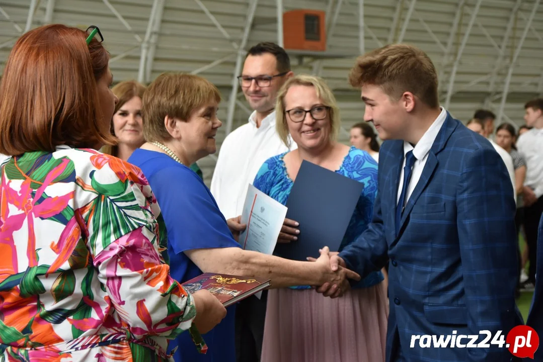W tym roku byliśmy na uroczystości zakończenia roku szkolnego w Zespole Szkolno-Przedszkolnym nr 1 w Rawiczu, czyli podstawówce "pod zegarem". Wręczenie świadectw absolwentom trzech klas ósmych połączono z pożegnaniem wieloletniej dyrektor Jagny Dybczyńskiej-Grześkowiak, która zakończyła karierę zawodową i przeszła na emeryturę.