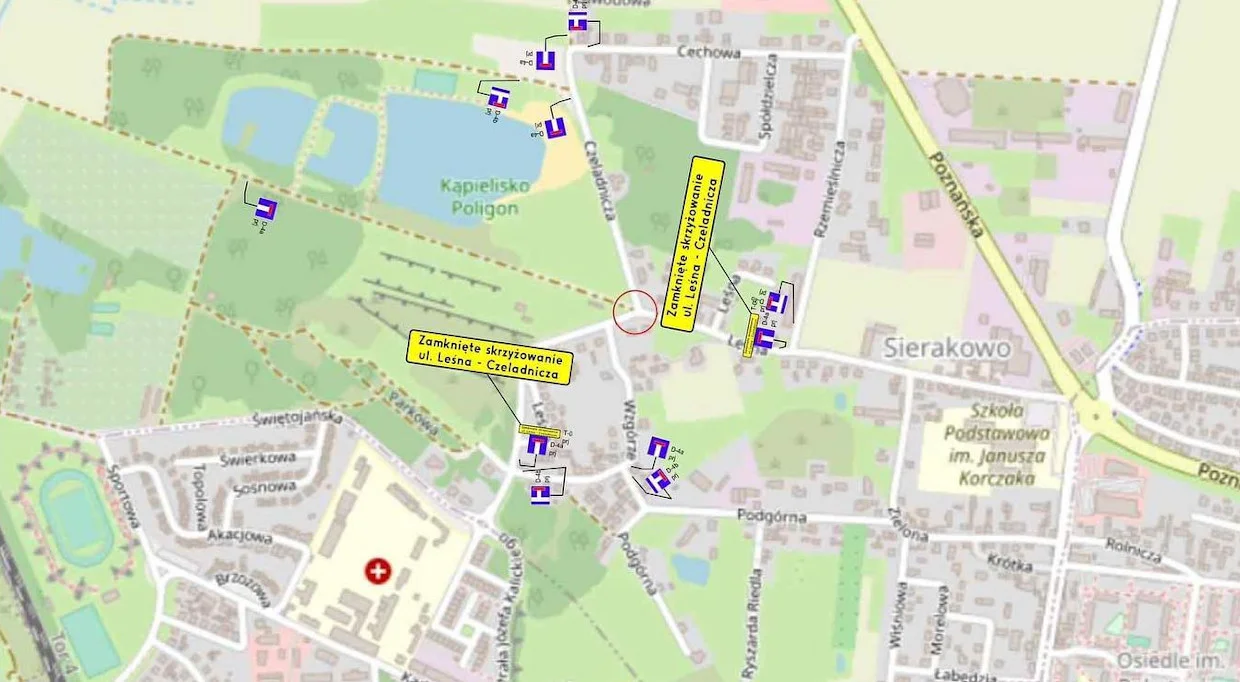 Obecnie wykonawca robót informuje, że od 15 maja-15 czerwca nastąpi zamknięcie skrzyżowania ulic Leśna – Czeladnicza – Promenada w Sierakowie. Ma to związek z budową ronda na skrzyżowaniu tych właśnie ulic.