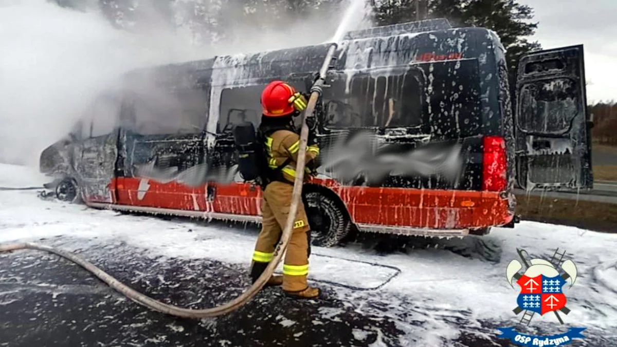 W pewnym momencie, w okolicach Rydzyny bus zajął się ogniem. Jak informuje leszczyńska policja, pożar w komorze silnika pojawił się podczas jazdy. Pasażerowie oraz kierowca opuścili auto.