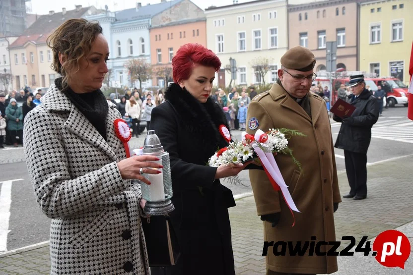 Główna uroczystość odbyła się przed budynkiem urzędu miejskiego, na którym znajduje się tablica upamiętniająca tych, którzy polegli w walce o niepodległość. Prowadził ją Rafał Sołtysiak, a pierwszym ważnym momentem było wspólne odśpiewanie "Mazurka Dąbrowskiego".