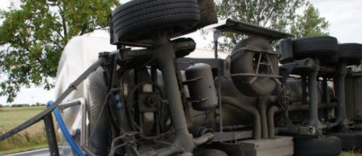 Na krajowej 5, pomiędzy Dąbrówką a Goliną Wielką, przewróciła się przyczepa samochodu ciężarowego.