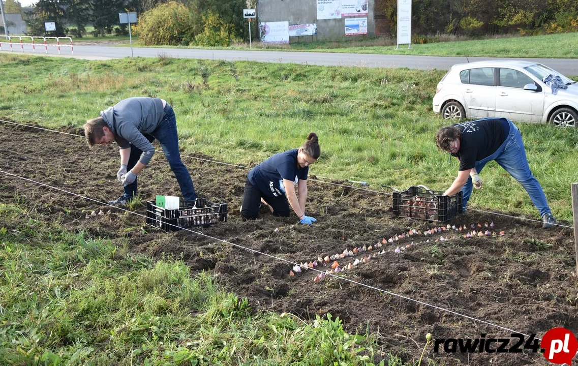 Pracowali intensywnie w sobotę od rana. Na wyznaczonym miejscu, w porozumieniu z władzami Jutrosina, posadzili kilka tysięcy cebulek wiosennych kwiatów. Są wśród nich żonkile, hiacynty i tulipany. Cebulki przekazała lokalna firma, zajmująca się produkcją nasion.