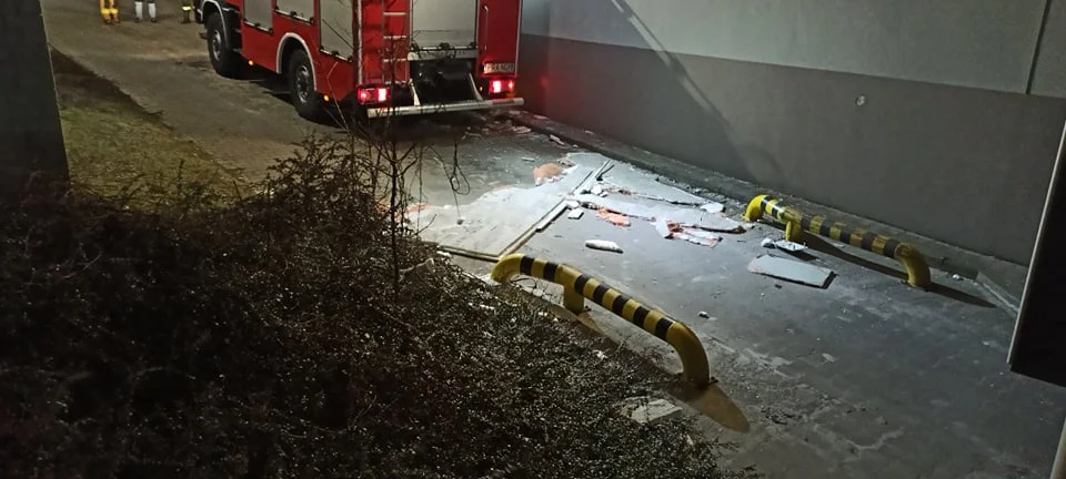 Fragmenty elewacji spadały z wysokości około 25 metrów. Niestety, ze względu na zbyt wąską bramę prowadzącą na teren świątyni, nie udało się nam tam wjechać podnośnikiem. Okolica wskazanego nam miejsca została więc tylko zabezpieczona - przekazuje asp. sztab. Roman Sidor.