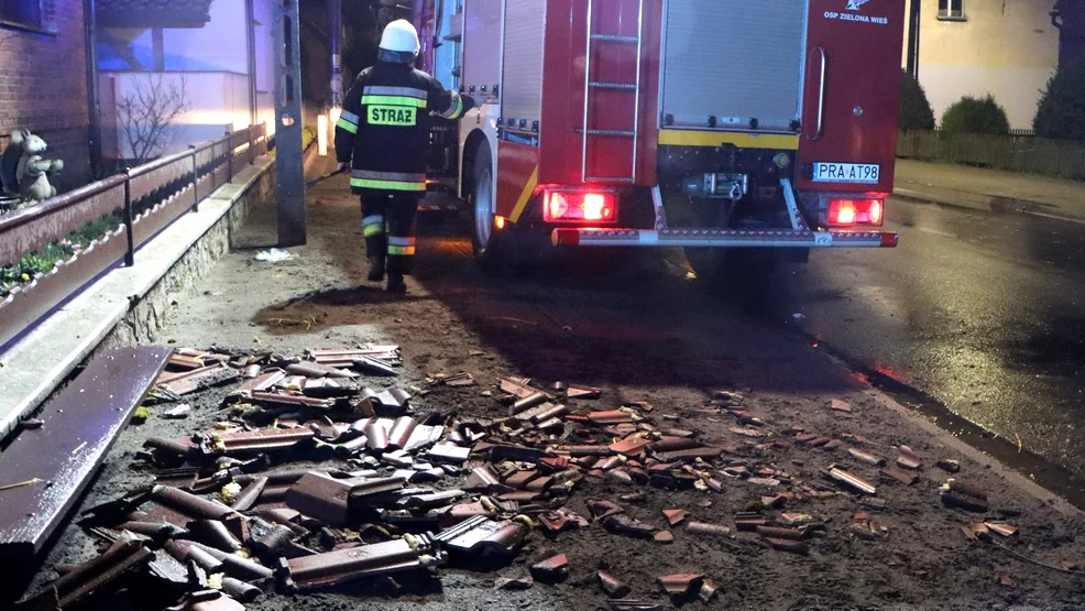 Do akcji zostali zadysponowani także strażacy. Działali w Zielonej Wsi, gdzie wiatr uszkodził dach budynku mieszkalnego, a także w Konarach, gdzie uszkodzone zostały dachy w budynku mieszkalnym i gospodarczym na terenie jednej posesji.
