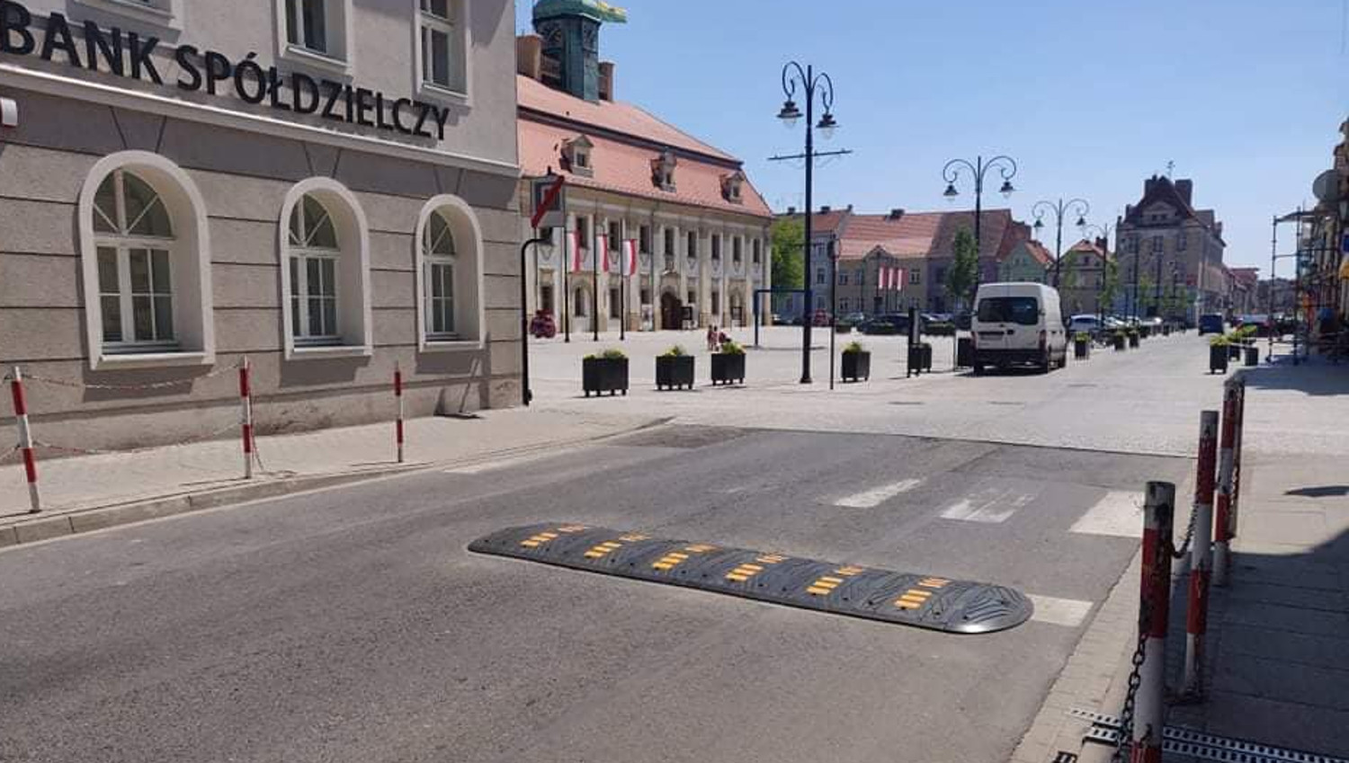 Dodatkowo, niedawno na ul. 3 Maja, przed wjazdem na rynek, został zamontowany próg zwalniający.