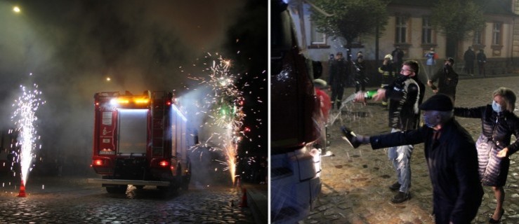 Chwilę po godzinie 20.00 - w asyście OSP Zielona Wieś, Ugoda i Miejska Górka - strażacy ochotnicy dotarli na sarnowski rynek. Na wjeżdżające auto czekał szpaler druhen i druhów, trzymających zapalone race oraz mieszkańcy. Zgodnie z tradycją, pojazd został polany szampanem.