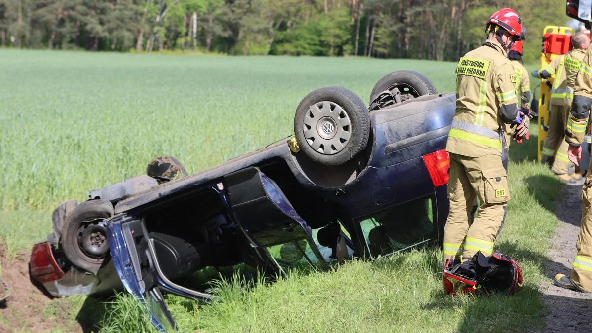 Auta zderzyły się. Fiat został uszkodzony, ale jadącym nim dwóm osobom nic się nie stało. Volkswagen wpadł do rowu i dachował. Niezbędna była interwencja służb ratunkowych. Przed ich przyjazdem pomocy poszkodowanym udzielała funkcjonariuszka rawickiej straży pożarnej.