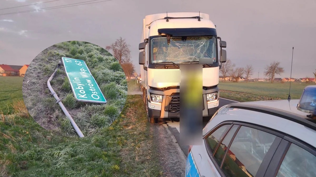 Mężczyzna najprawdopodobniej zasnął za kółkiem, zjechał na pobocze, niszcząc znak. Na szczęście, ciężarówka nie przewróciła się, ale uszkodzona została w niej miska olejowa. Na jezdni zalegała plama oleju.