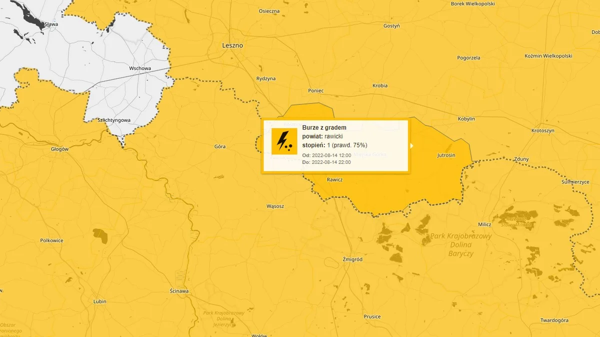 Burze z gradem spodziewane są w znacznej części Wielkopolski, w tym - w powiecie rawickim. Prawdopodobieństwo, że zjawiska się pojawią, wynosi 75%.