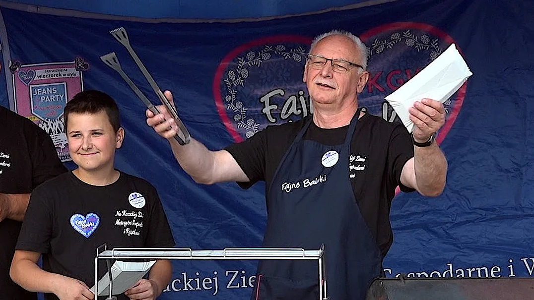 Na zakończenie rajdu Fajne Babki przygotowały dla gości prawdziwą ucztę: gzikę, zupę ziemniaczaną, smalec z chlebem własnego wypieku i pieczone pyry, które serwował gościom... burmistrz Grzegorz Kubik. Podczas biesiady członkinie koła gospodyń wspominały wycieczkę do Rzymu, z której powróciły kilka dni temu.
