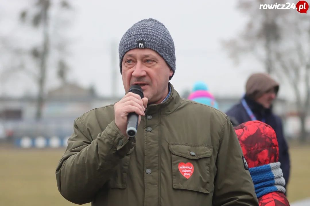 Jednym z punktów jutrosińskiego finału WOŚP był 4. Bieg do Puszki. Chętni pojawili się na stadionie przed godz. 14.00. Powitał ich burmistrz Romuald Krzyżosiak i dyrektor GCKiR - Martyna Misiek. Życzyli wszystkim powodzenia.