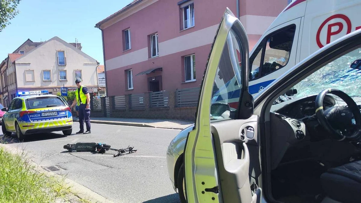 Zgłoszenie do służb wpłynęło po godz. 13.00. Wynikało z niego, że zderzyli się mieszkańcy gminy Rawicz: 52-letni kierujący fordem focusem i nastolatek, jadący hulajnogą.